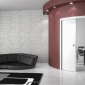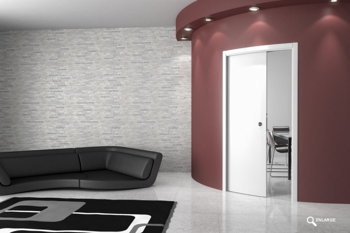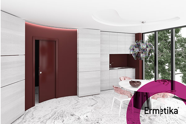 מערכת הזזה לכיס ברדיוס לפי בחירה, תואמת קיר עגול, כוללת כנף עגולה. גימור צביעה בתנור גוון לפי בחירה מכל מניפות הצבעים עד 100% ברק / גמר פורניר.